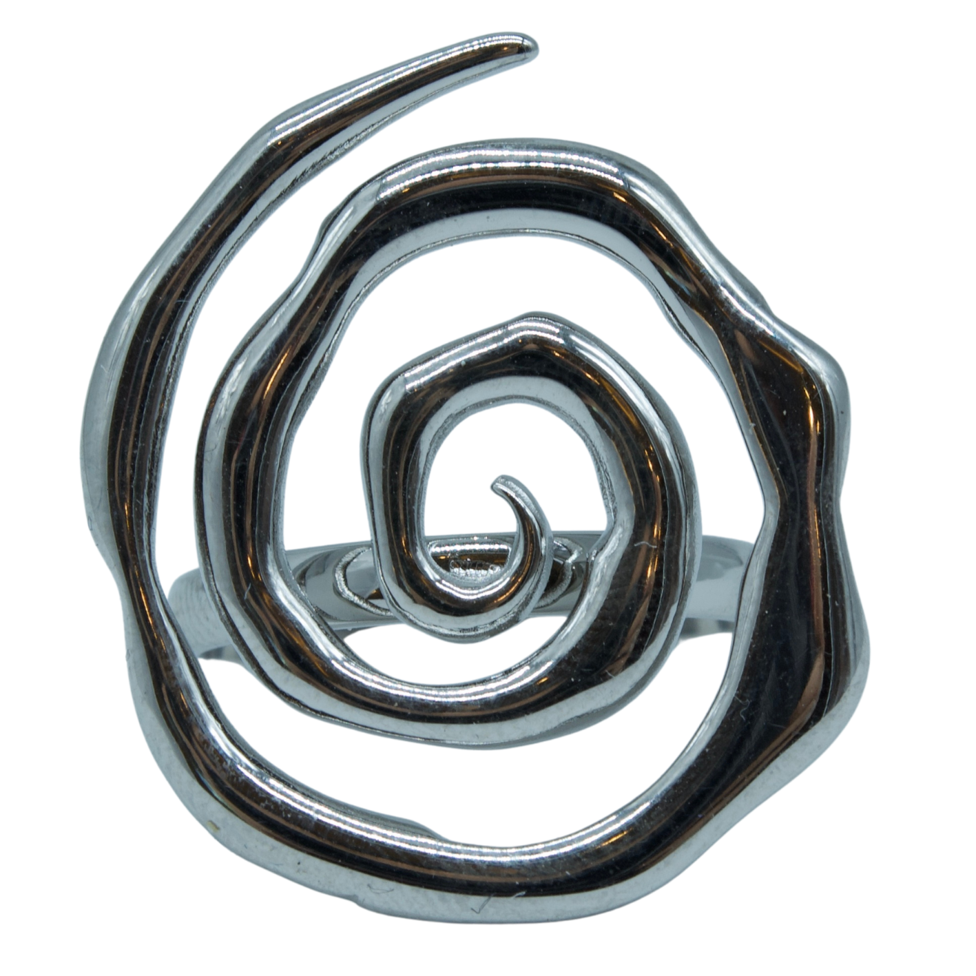 Anillo de diseño de espiral irregular, para las amantes de los anillos plateados este es perfecto para ti! Unicamente disponible en plateado y ajustable.