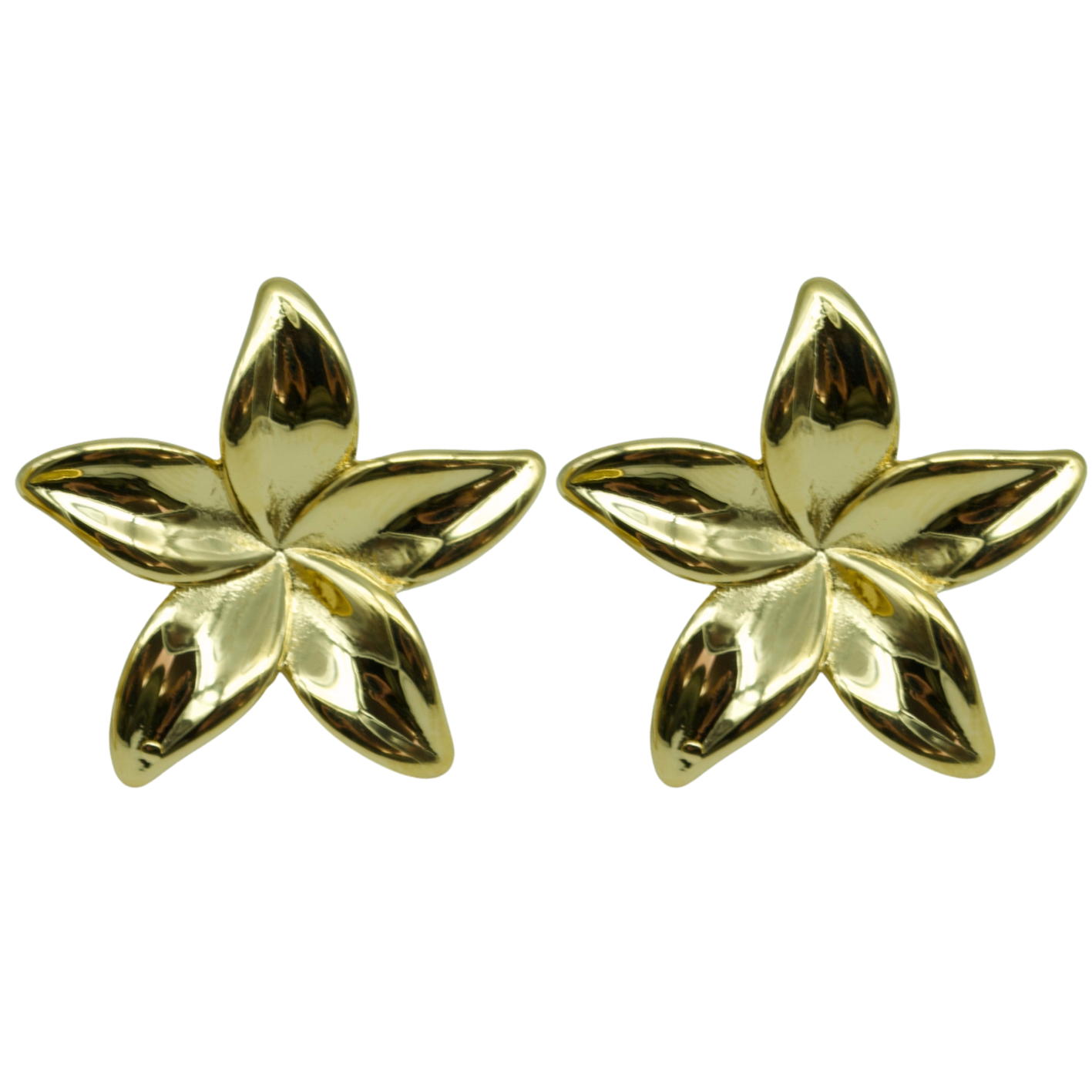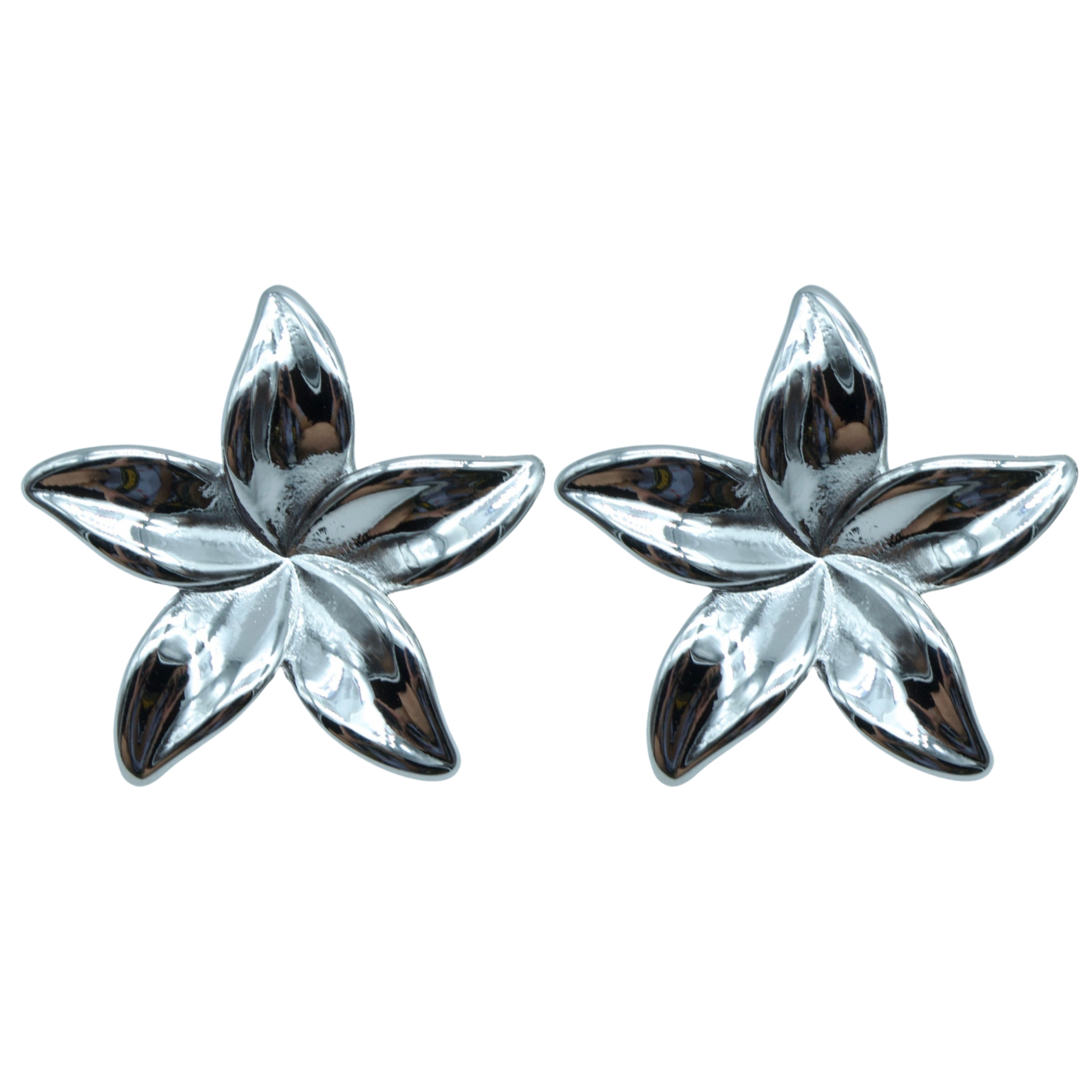 Aretes de Chapa de Oro de 14k. De diseño de flor. Disponibles solamente en plateado. 25 mm de largo.