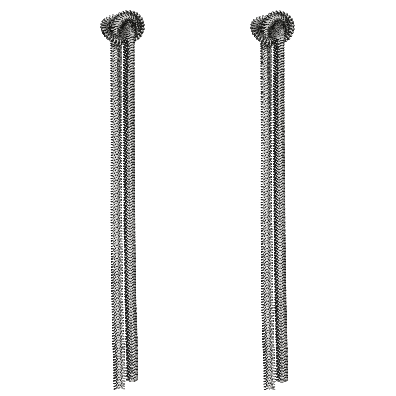Aretes largos con detalle superior en forma de nudo y dos cadenas delgadas que caen rectas. Diseño fino, ligero y con movimiento.