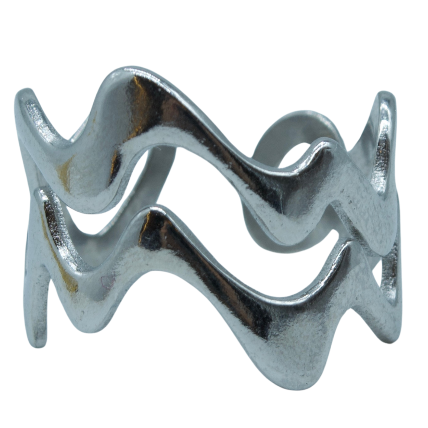 Anillo de diseño irregular. Disponible en dorado y plateado. Ajustable. Acero Inoxidable