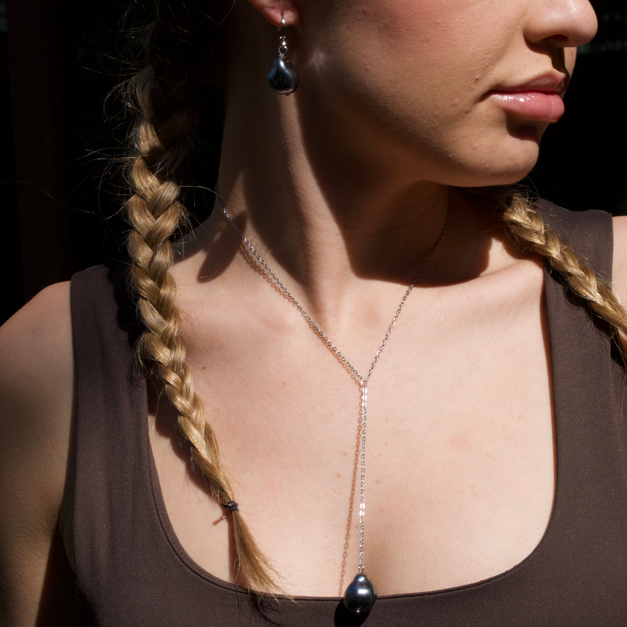 Aretes con dos perlas artificiales color azul, lo que hace que su caída sea corta aportando un toque sofisticado y perfectos para el día a día