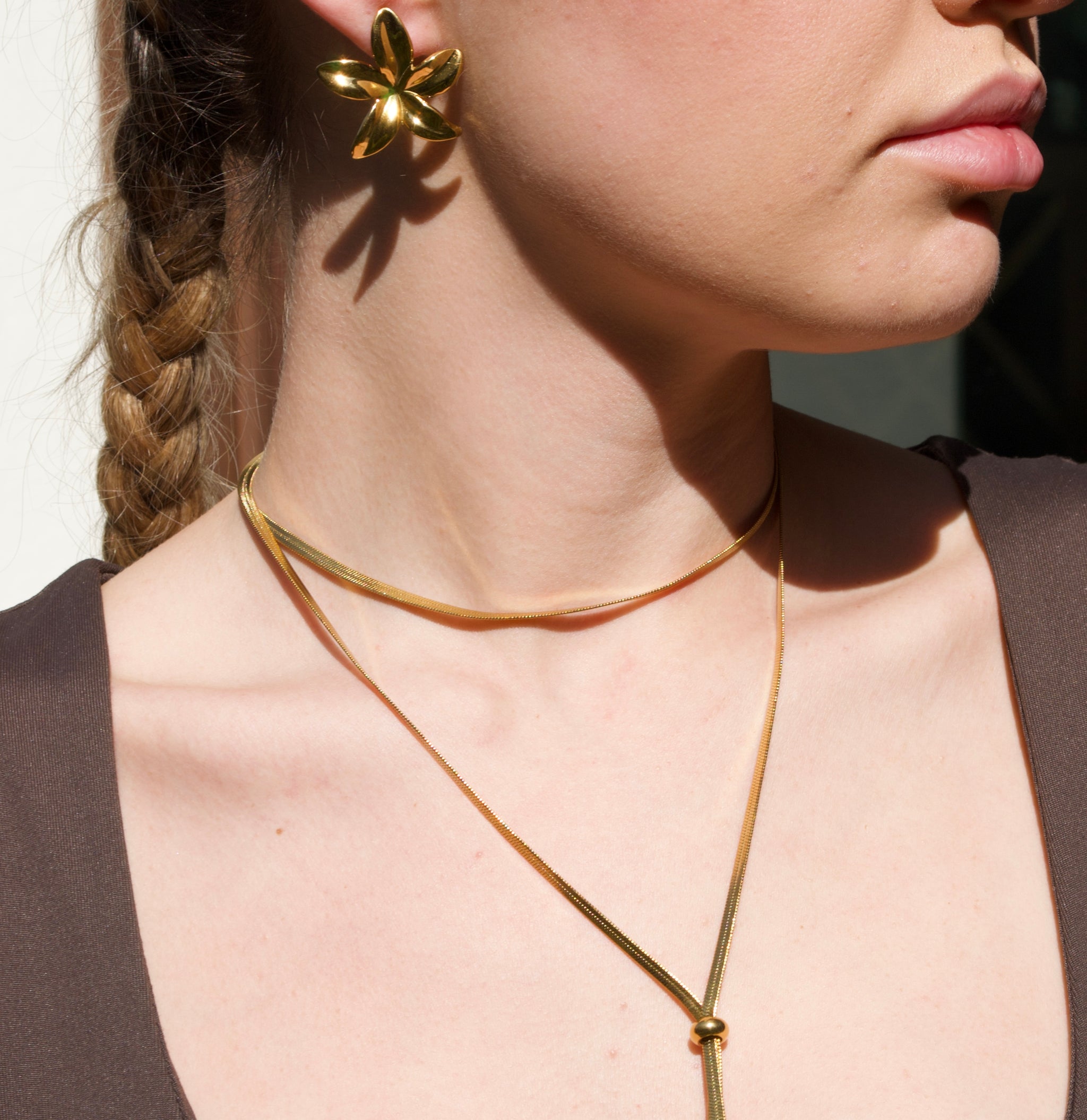 Aretes con baño de chapa de oro, ideales para quienes buscan un acabado elegante y versátil. Para prolongar su vida útil, evita el contacto con perfumes, cremas o agua, y guárdalos en un lugar seco. Con estos cuidados, mantendrán su brillo y color por más tiempo