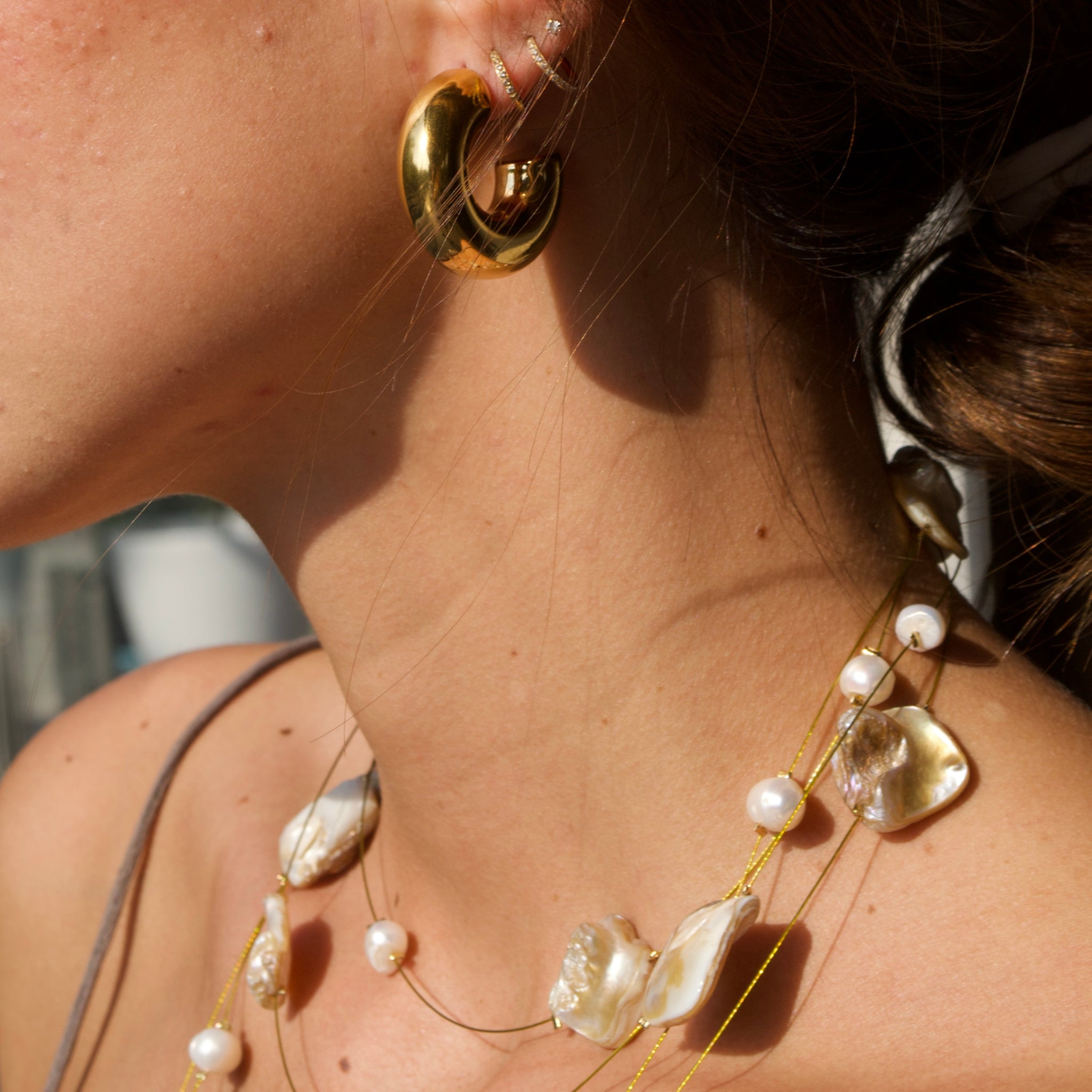Aretes de acero inoxidable con diseño bold en forma de “C”. Su estructura gruesa y voluminosa a los hacen ideales para quienes buscan un accesorio que transforme cualquier look