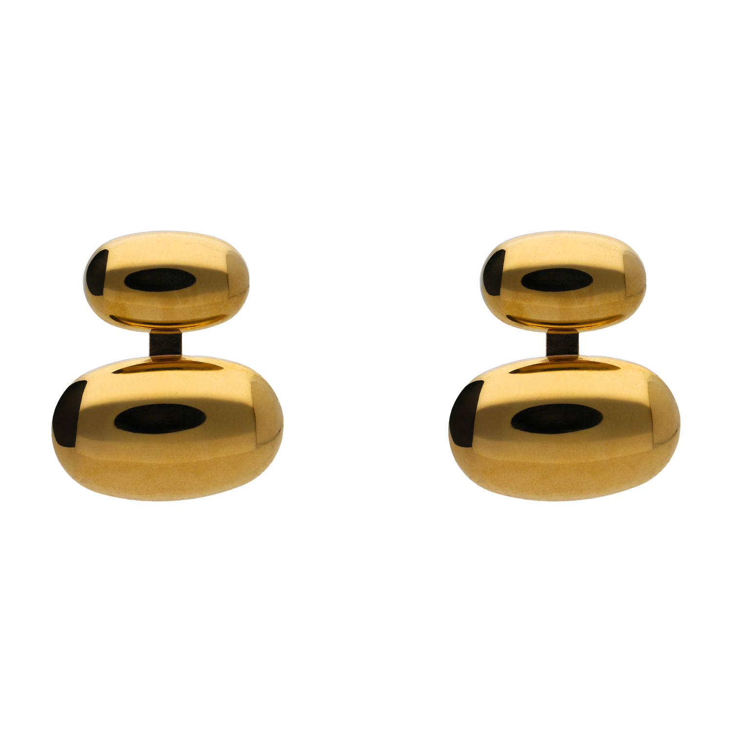 Aretes 2 en 1. Diseño de una bolita pequeña, acompañada con otro dije colgante colocado en la mariposa del arete.