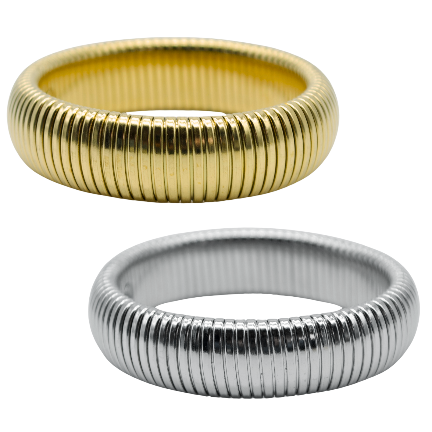 Pulsera en medida chica, que se adapta a la muñeca. Está disponible en dos tamaños: 16x18 mm y 16x20 mm, lo que permite elegir el ajuste ideal. Puede usarse sola o combinada con otras pulseras para crear diferentes estilos