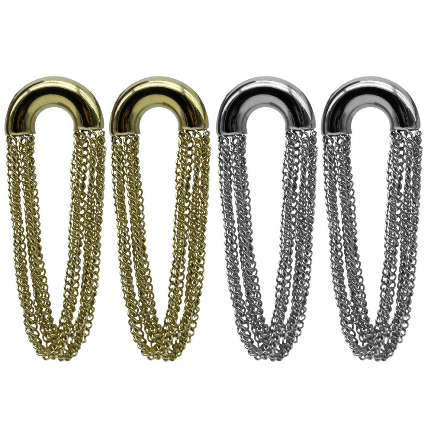 Aretes de acero inoxidable con diseño de cadena Disponibles en dorado y plateado.